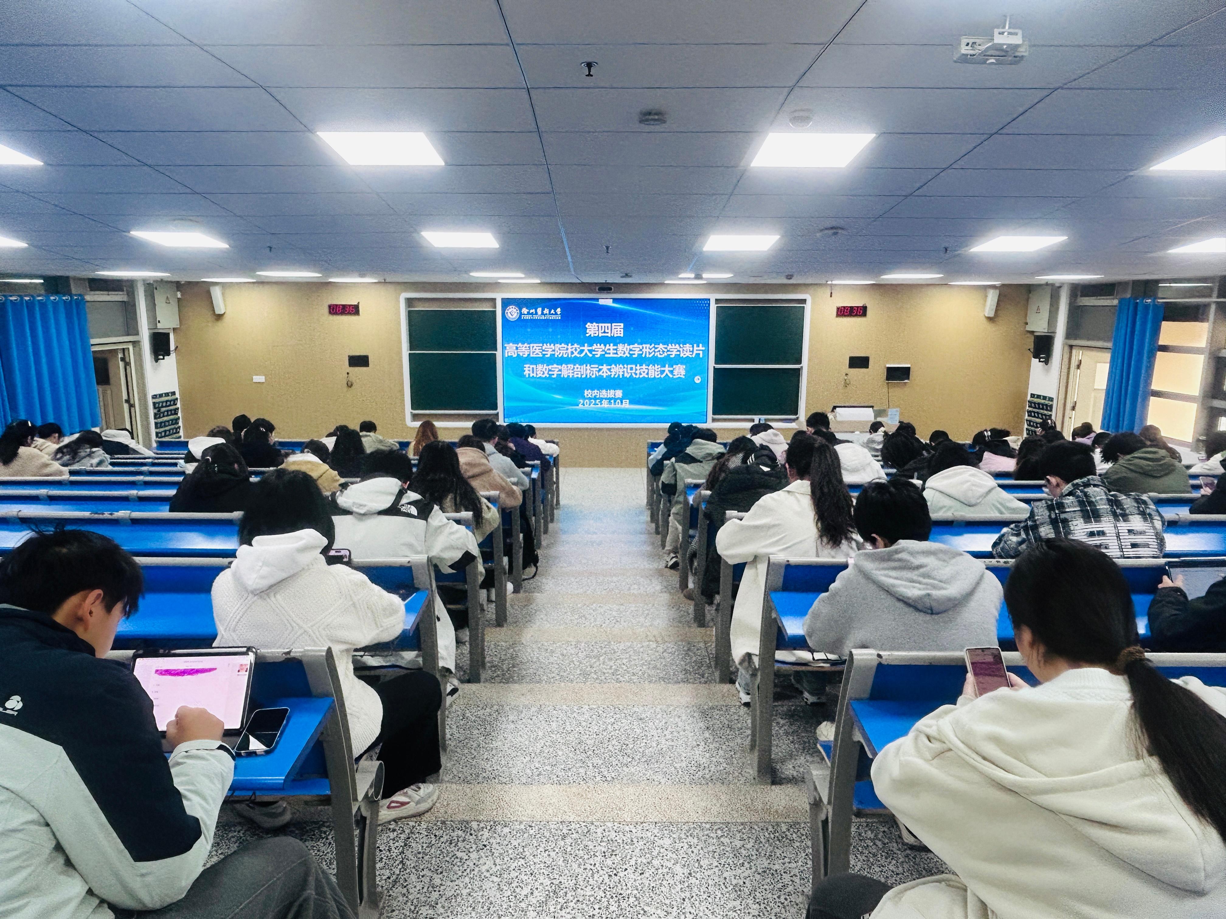 为贯彻落实教育部等九部门《关于加快推进教育数字化的意见》,更好地参与第四届高等医学院校大学生数字形态学读片和数字解剖标本辨识技能大赛,基础医学院、基础医学国家级实验教学示范中心于10月26日成功举办第四届高等医学院校大学生数字形态学读片和数字解剖标本辨识技能大赛校内选拔赛。来自第一临床医学院、第二临床医学院、麻醉学院、医学影像学院等多个学院的200余名同学参加了本次选拔赛。