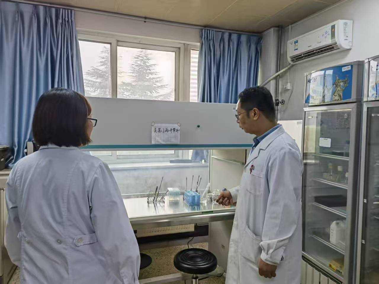 为切实加强实验教学安全管理,9月29日下午,形态学实验教学中心主任孔德龙同志带领安全员王维维、王海燕等同志开展了实验室安全专项自查工作。本次自查严格遵循“零容忍、全覆盖、见实效”的工作原则,重点围绕“人的不安全行为、物的不安全状态、环境的不安全因素”三个关键环节,形态学教学实验室、危化品储存间、废液收集间、高压灭菌室、机房等重点区域实施了全面排查。检查内容包括危险化学品"五双"管理、生物标本防腐保存、电气线路老化、消防通道畅通、应急喷淋与洗眼设备运行、个体防护装备配备等多项关键指标。