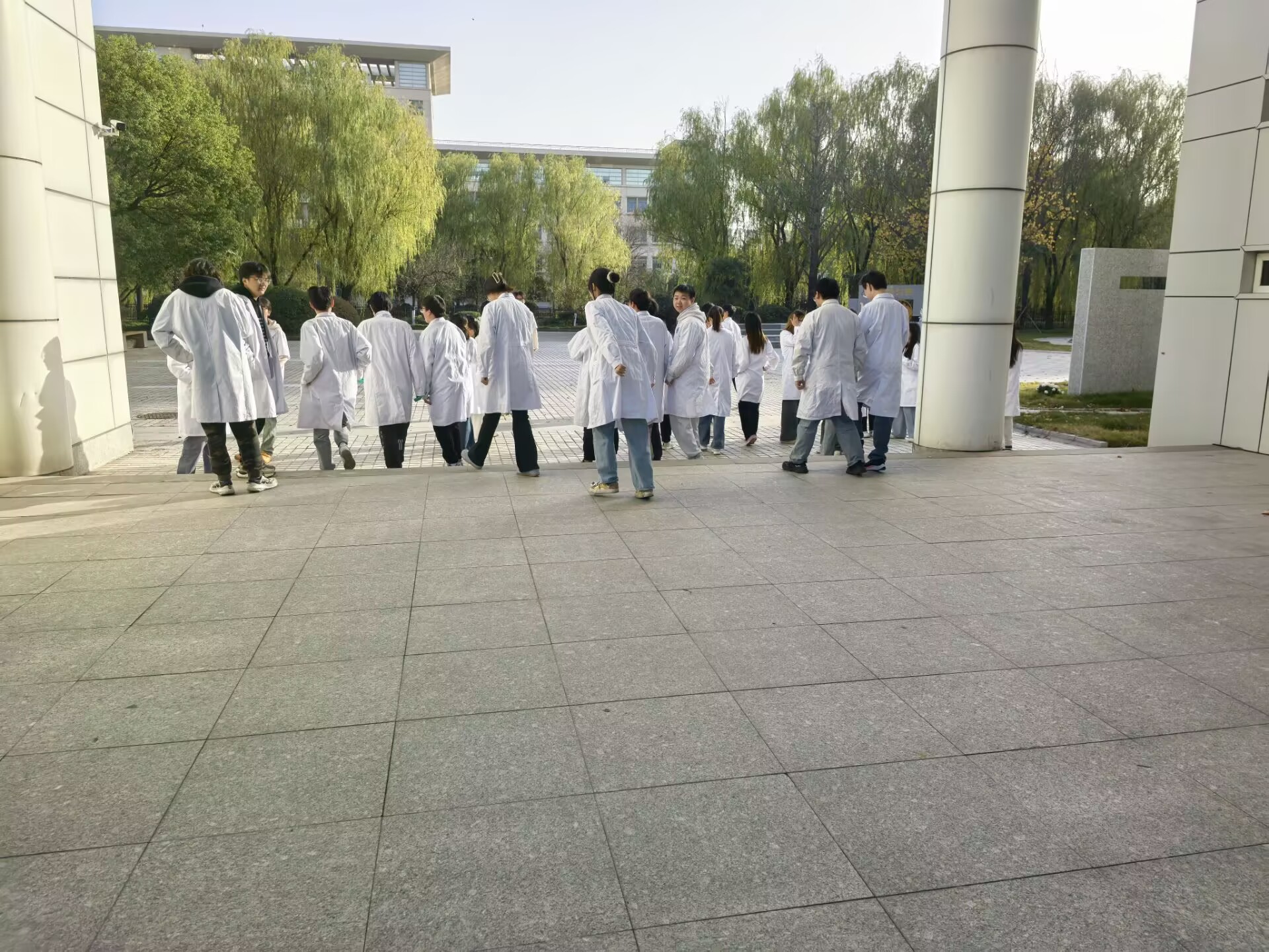 本次演练聚焦应急疏散环节,模拟实验楼内突发火情的场景。下午15时,随着消防哨声响起,全体参与学生在老师和安全员的指引下,严格按照预定疏散路线,迅速有序地从实验楼撤离至指定安全区域。整个疏散过程组织严密、反应迅速,展现了师生良好的应急素养。